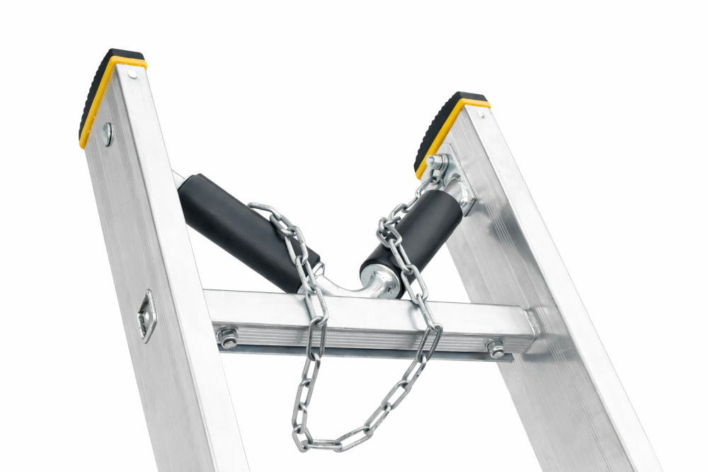 V prípade nutnosti opretia rebríka o stĺp alebo inú plochu figuruje v našej firme doplnok V profil, ktorý rebrík pri opretí centruje a zabraňuje nežiaducemu pohybu pri použití a navyše uľahčuje vďaka dvom otočným valčekom pohyb rebríka po opornej ploche. Na prianie namontujeme na Vami vybraný typ rebríka, podľa ktorého určíme vhodný typ V profilu. Typ 3056 je určený pre rebríky radu FORTE typ 82xx a 83xx.